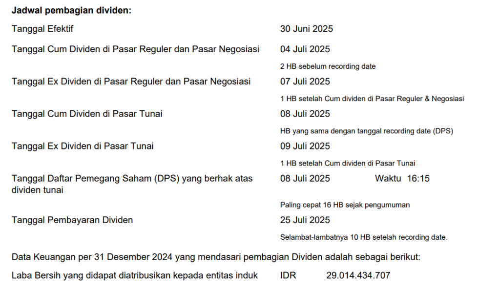 Pembagian Dividen Tunai untuk periode tahun buku 2024 sesuai dengan hasil RUPS Tahunan sebagai berikut :