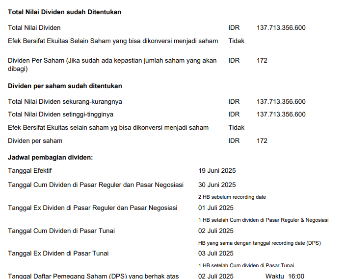 Pembagian Dividen Tunai untuk periode tahun buku 2024