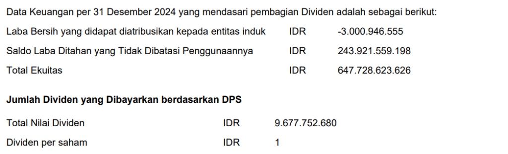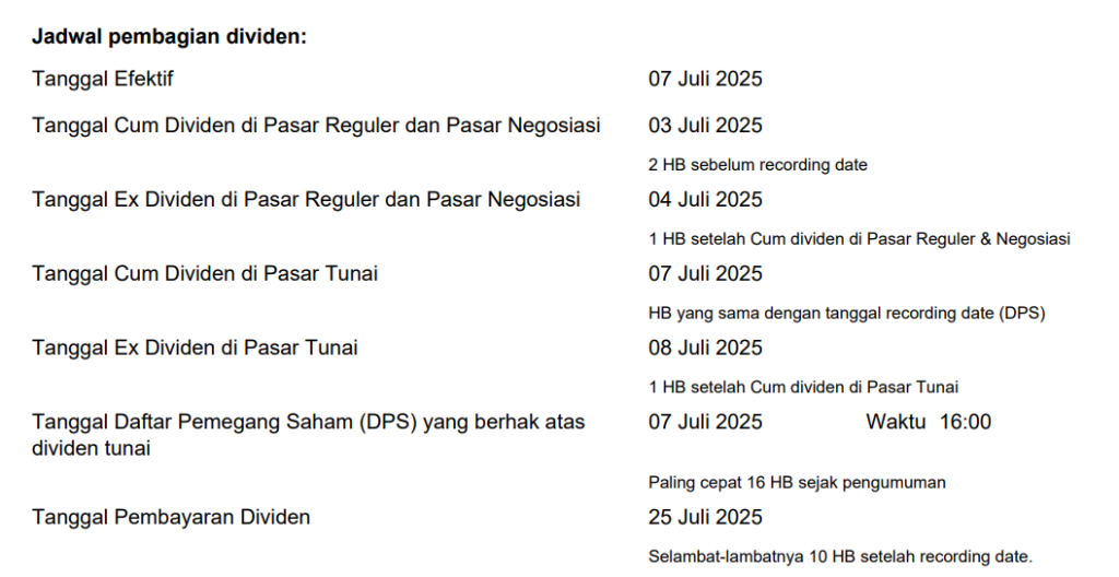 Pembagian Dividen Tunai untuk periode tahun buku 2025 sesuai dengan hasil RUPS Tahunan sebagai berikut :