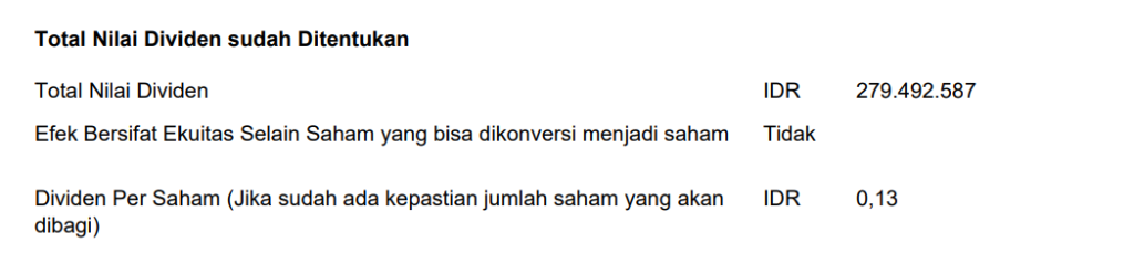 HomeInsightAksi Korporasi - Dividen Tunai LAJU InsightInsight PintarSaham.idPengumuman Emiten Aksi Korporasi – Dividen Tunai LAJU By Isaka Laksmi June 3, 2025 0 155 Share FacebookTwitterPinterestWhatsApp Lagi cari saham yang prospeknya oke dan gak cuma “katanya”? Coba cek ini deh. https://bit.ly/pintarsahamid TagsKeterbukaan Informasi LAJULAJUSaham Laju Share FacebookTwitterPinterestWhatsApp Previous articleAksi Korporasi – Dividen Tunai SWIDNext articleKomisaris CMNP Mengundurkan Diri Isaka Laksmi RELATED ARTICLES Analisis Saham Menakar Efektivitas Perlindungan Investor Ritel: Belajar dari Fenomena Saham MENN dan BIKE April 17, 2026 Analisis Saham Menakar Risiko di Balik Akuisisi BIKE oleh PT Penajam Makmur Jaya: Belajar dari Pola Saham MENN April 17, 2026 Analisis Saham Strategi Jasa Energi: Analisis Saham ELSA di Tengah Volatilitas Harga Minyak Dunia April 17, 2026 LEAVE A REPLY Cancel reply Comment: Please enter your comment! Name:* Please enter your name here Email:* You have entered an incorrect email address! Please enter your email address here Website: Save my name, email, and website in this browser for the next time I comment. - Advertisment - Latest Post Menakar Efektivitas Perlindungan Investor Ritel: Belajar dari Fenomena Saham MENN dan BIKE April 17, 2026 Menakar Risiko di Balik Akuisisi BIKE oleh PT Penajam Makmur Jaya: Belajar dari Pola Saham MENN April 17, 2026 Strategi Jasa Energi: Analisis Saham ELSA di Tengah Volatilitas Harga Minyak Dunia April 17, 2026 Analisis Saham MEDC: Menguak Realita di Balik Penurunan Laba dan Kekuatan Arus Kas 2025 April 17, 2026 Load more Most Popular Perubahan Skema Royalti Batubara, Good Or Bad? January 16, 2021 Apa yang dimaksud dengan Free Float dalam Saham November 18, 2018 Analisa Fundamental Saham July 6, 2018 Daftar Perusahaan Real Estate dan Property yang terdaftar di BEI July 21, 2019 Load more - Advertisment - Most Popular Menakar Efektivitas Perlindungan Investor Ritel: Belajar dari Fenomena Saham MENN dan BIKE April 17, 2026 Menakar Risiko di Balik Akuisisi BIKE oleh PT Penajam Makmur Jaya: Belajar dari Pola Saham MENN April 17, 2026 Strategi Jasa Energi: Analisis Saham ELSA di Tengah Volatilitas Harga Minyak Dunia April 17, 2026 Analisis Saham MEDC: Menguak Realita di Balik Penurunan Laba dan Kekuatan Arus Kas 2025 April 17, 2026 Load more Recent Comments Sepatu Futsal on Apa yang dimaksud dengan Free Float dalam Saham ARB Hunter 21 Januari 2022 | Pintar Saham on Perubahan Skema Royalti Batubara, Good Or Bad? Skydrugz Corner: Riwayat Profil, Laba dan Utang BIPI | Pintar Saham on Perubahan Skema Royalti Batubara, Good Or Bad? Skydrugz Corner: Monopoli TINS | Pintar Saham on Perubahan Skema Royalti Batubara, Good Or Bad? Skydrugz Corner: Realisasi Right Issue Beberapa Bank Mini di 2021, Mana Yang Laris? | Pintar Saham on Perubahan Skema Royalti Batubara, Good Or Bad?