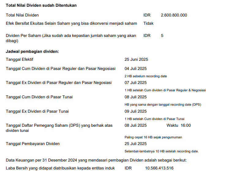 Pembagian Dividen Tunai untuk periode tahun buku 2024