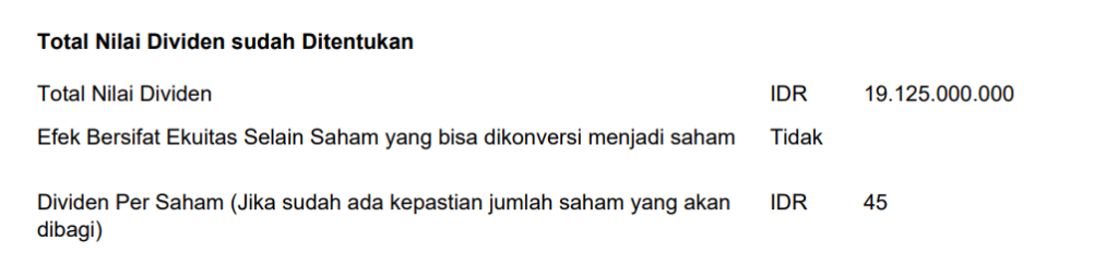 HomeInsightAksi Korporasi - Dividen Tunai LPIN InsightInsight PintarSaham.idPengumuman Emiten Aksi Korporasi – Dividen Tunai LPIN By Isaka Laksmi May 28, 2025 0 177 Share FacebookTwitterPinterestWhatsApp Pembagian Dividen Tunai untuk periode tahun buku 2024 sesuai dengan hasil RUPS Tahunan sebagai berikut: TagsKeterbukaan Informasi LPINLPINSaham LPIN Share FacebookTwitterPinterestWhatsApp Previous articleSiloam Pertahankan Pendapatan Stabil Sebesar Rp2,35 Triliun Pada Kuartal Pertama 2025 di Tengah Tantangan MusimanNext articleAksi Korporasi – Dividen Tunai YULE Isaka Laksmi RELATED ARTICLES Analisis Saham Menakar Efektivitas Perlindungan Investor Ritel: Belajar dari Fenomena Saham MENN dan BIKE April 17, 2026 Analisis Saham Menakar Risiko di Balik Akuisisi BIKE oleh PT Penajam Makmur Jaya: Belajar dari Pola Saham MENN April 17, 2026 Analisis Saham Strategi Jasa Energi: Analisis Saham ELSA di Tengah Volatilitas Harga Minyak Dunia April 17, 2026 LEAVE A REPLY Cancel reply Comment: Please enter your comment! Name:* Please enter your name here Email:* You have entered an incorrect email address! Please enter your email address here Website: Save my name, email, and website in this browser for the next time I comment. - Advertisment - Latest Post Menakar Efektivitas Perlindungan Investor Ritel: Belajar dari Fenomena Saham MENN dan BIKE April 17, 2026 Menakar Risiko di Balik Akuisisi BIKE oleh PT Penajam Makmur Jaya: Belajar dari Pola Saham MENN April 17, 2026 Strategi Jasa Energi: Analisis Saham ELSA di Tengah Volatilitas Harga Minyak Dunia April 17, 2026 Analisis Saham MEDC: Menguak Realita di Balik Penurunan Laba dan Kekuatan Arus Kas 2025 April 17, 2026 Load more Most Popular Perubahan Skema Royalti Batubara, Good Or Bad? January 16, 2021 Apa yang dimaksud dengan Free Float dalam Saham November 18, 2018 Analisa Fundamental Saham July 6, 2018 Daftar Perusahaan Real Estate dan Property yang terdaftar di BEI July 21, 2019 Load more - Advertisment - Most Popular Menakar Efektivitas Perlindungan Investor Ritel: Belajar dari Fenomena Saham MENN dan BIKE April 17, 2026 Menakar Risiko di Balik Akuisisi BIKE oleh PT Penajam Makmur Jaya: Belajar dari Pola Saham MENN April 17, 2026 Strategi Jasa Energi: Analisis Saham ELSA di Tengah Volatilitas Harga Minyak Dunia April 17, 2026 Analisis Saham MEDC: Menguak Realita di Balik Penurunan Laba dan Kekuatan Arus Kas 2025 April 17, 2026 Load more Recent Comments Sepatu Futsal on Apa yang dimaksud dengan Free Float dalam Saham ARB Hunter 21 Januari 2022 | Pintar Saham on Perubahan Skema Royalti Batubara, Good Or Bad? Skydrugz Corner: Riwayat Profil, Laba dan Utang BIPI | Pintar Saham on Perubahan Skema Royalti Batubara, Good Or Bad? Skydrugz Corner: Monopoli TINS | Pintar Saham on Perubahan Skema Royalti Batubara, Good Or Bad? Skydrugz Corner: Realisasi Right Issue Beberapa Bank Mini di 2021, Mana Yang Laris? | Pintar Saham on Perubahan Skema Royalti Batubara, Good Or Bad?