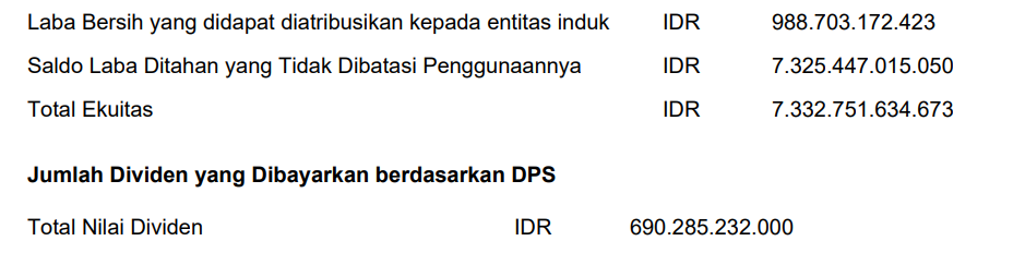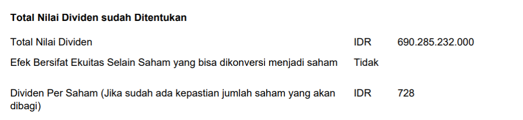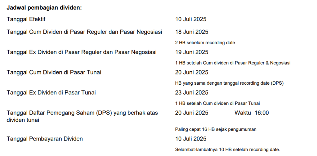 Pembagian Dividen Tunai untuk periode tahun buku 2024 sesuai dengan hasil RUPS Tahunan sebagai berikut: