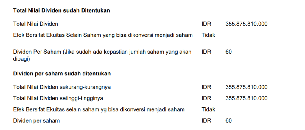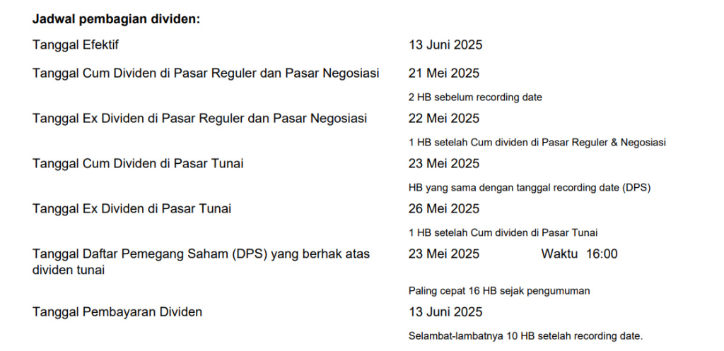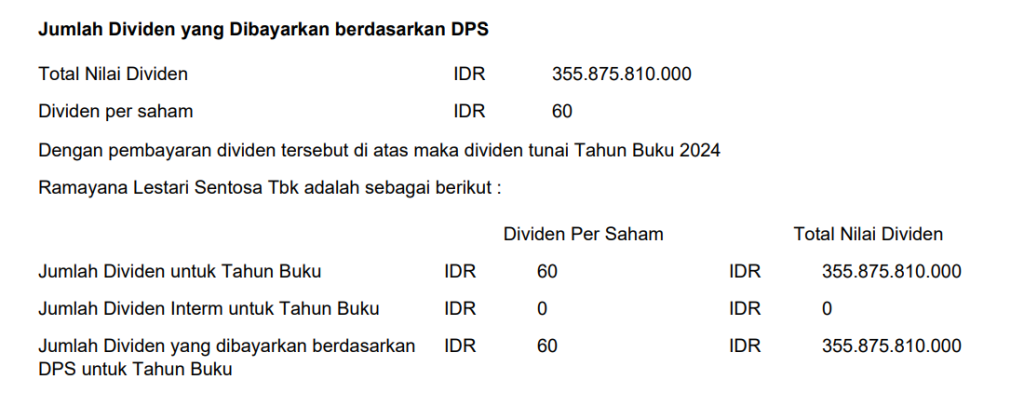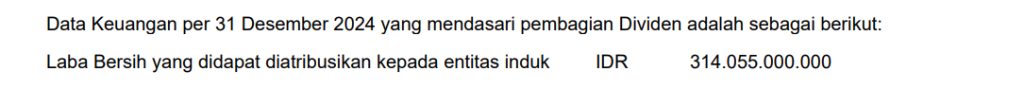Pembagian Dividen Tunai untuk periode tahun buku 2024 sebagai berikut :
