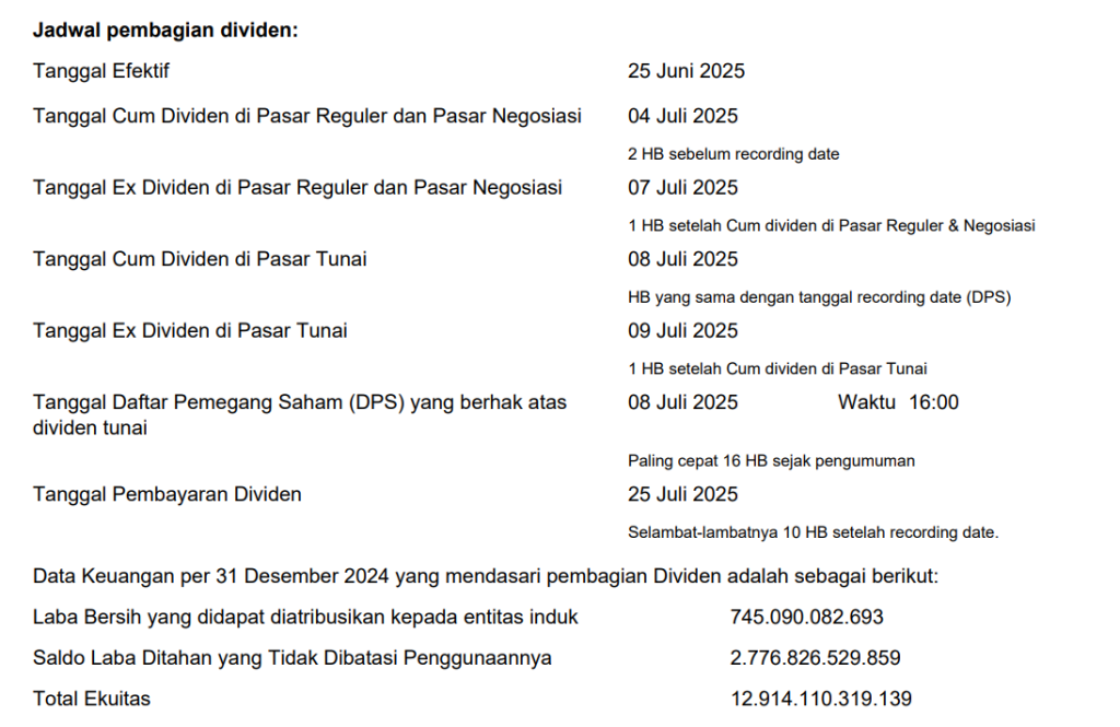 Pembagian Dividen Tunai untuk periode tahun buku 2024 sesuai dengan hasil RUPS Tahunan sebagai berikut :