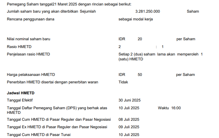 Perusahaan Menyampaikan Hak Memesan Efek Terlebih Dahulu sebagai berikut: