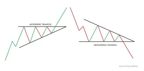Terdapat juga pola segitiga seperti Ascending Triangle dan Descending Triangle. Pola ini menunjukkan fase di mana pasar sedang menunggu keputusan sebelum terjadi lonjakan atau penurunan harga yang lebih besar.