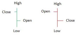 - Garis horizontal kecil di kiri batang menunjukkan harga pembukaan