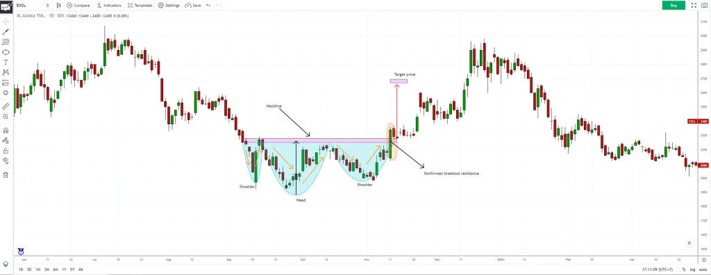 - Sinyal beli (Inverse Head and Shoulders): Penembusan neckline ke atas menjadi sinyal akumulasi.
