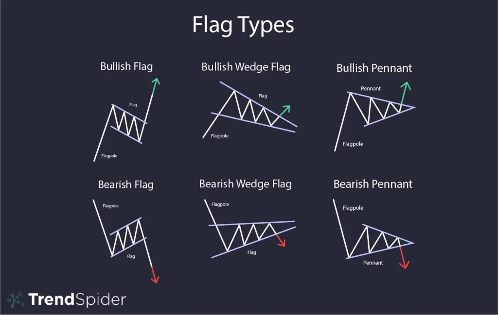 Kedua pola ini terbentuk setelah pergerakan harga yang tajam (flagpole), diikuti konsolidasi singkat sebelum harga melanjutkan arah semula.