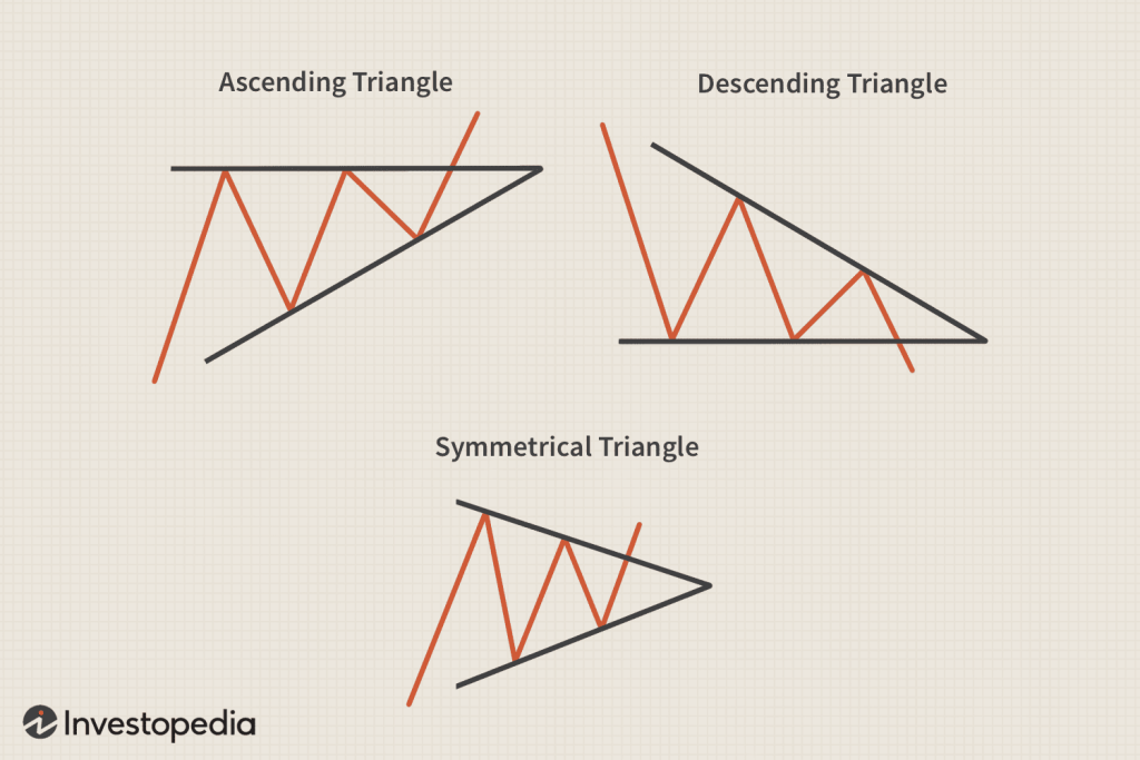 Pola segitiga terbentuk ketika harga bergerak dalam rentang yang semakin menyempit. Ada tiga varian utama: