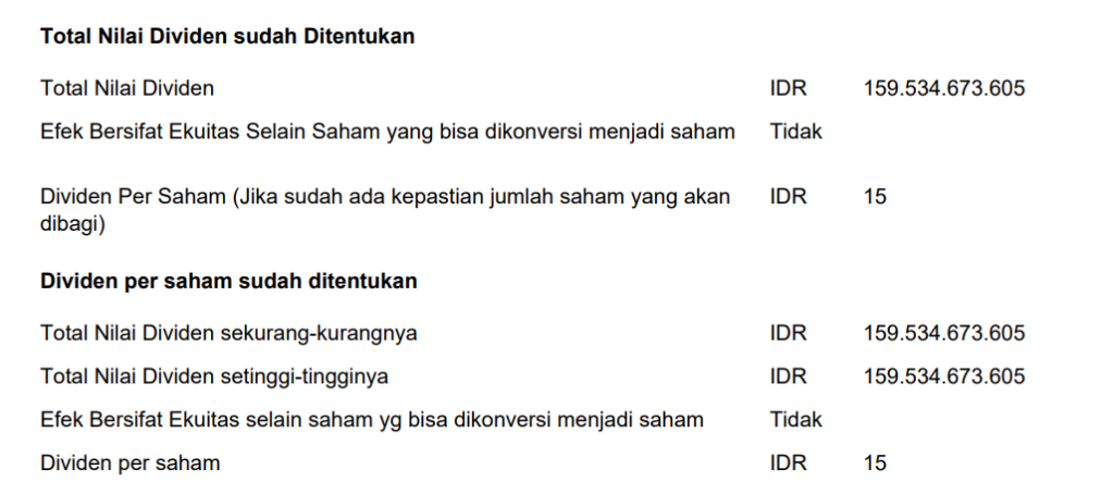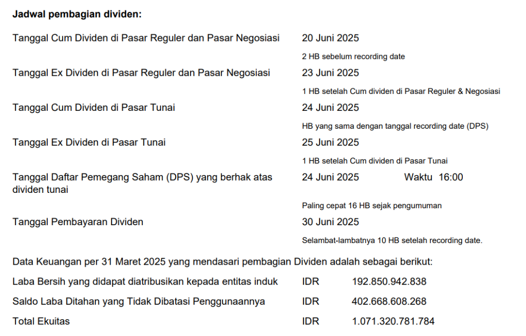 Pembagian Dividen Interim untuk periode tahun buku 2025 sebagai berikut: