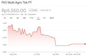 Emiten Makanan & Minuman PT. FKS Multi Agro Tbk menunjukkan kinerja yang meningkat di tahun 2023. Emiten telah mencatatkan laba bersih Rp 382 Milliar di tahun 2023. Laba tersebut meningkat -25.2% dibandingkan dengan capaian tahun sebelumnya.