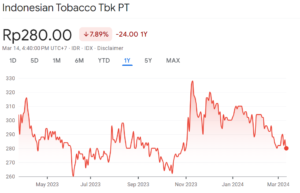 Emiten Rokok Indonesian Tobacco Tbk menunjukkan kinerja yang meningkat di tahun 2023. Emiten telah mencatatkan laba bersih Rp 37 Milliar di tahun 2023. Laba tersebut meningkat 12.6% dibandingkan dengan capaian tahun sebelumnya.
