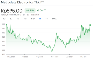 Emiten Perangkat Keras Teknologi PT Metrodata Electronics Tbk menunjukkan kinerja yang meningkat tahun 2023. Emiten telah mencatatkan laba bersih Rp 940 Milliar di tahun 2023. Laba tersebut meningkat 8.5% dibandingkan dengan capaian tahun sebelumnya.