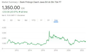 Berdasarkan laporan keuangan 2022, BJBR berhasil membukukan laba bersih sebesar Rp2,24 triliun.
