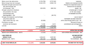 Setelah dikurangi berbagai beban dan ditambah penghasilan operasi lainnya, perusahaan mencatatkan laba usaha sebesar Rp2,84 triliun.