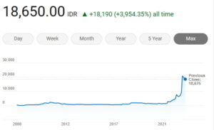Bahkan sempat menggeser BBCA dari puncak klasemen market cap meskipun sebentar saja.