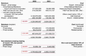 - penjualan ekspor batubara di mana perusahaan berhasil mendapatkan USD 4,22 miliar dari ekspor atau setara dengan 89,82% dari total pendapatan. Nilai ekspor ini meningkat signifikan dibandingkan tahun sebelumnya yang hanya USD 2,63 miliar atau naik 60,39%.