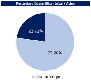Berdasarkan kategori asal SID investornya untuk saham scripless yang diperdagangkan di BEI, terlihat persentase kepemilikan investor lokal sebanyak 77,28%, sedangkan sisanya investor asing 22,72%.