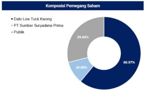 Selanjutnya ada PT Sumber Suryadana Prima sebanyak 10%, dan 29,03% sisanya dimiliki oleh publik (kepemilikan di bawah 5%).